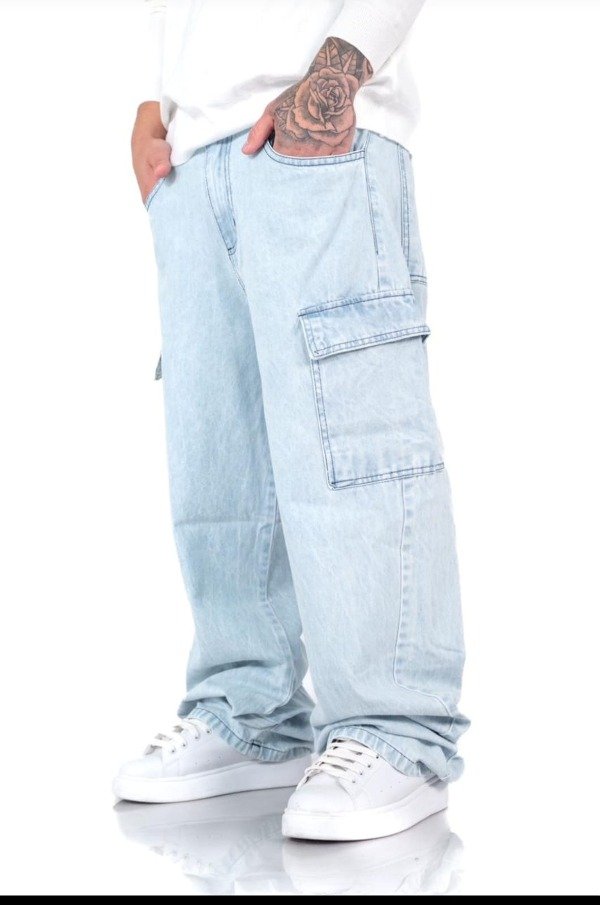 PANTALÓN DE JEANS TIPO BAGGY CON BOLSILLOS CARGOS
